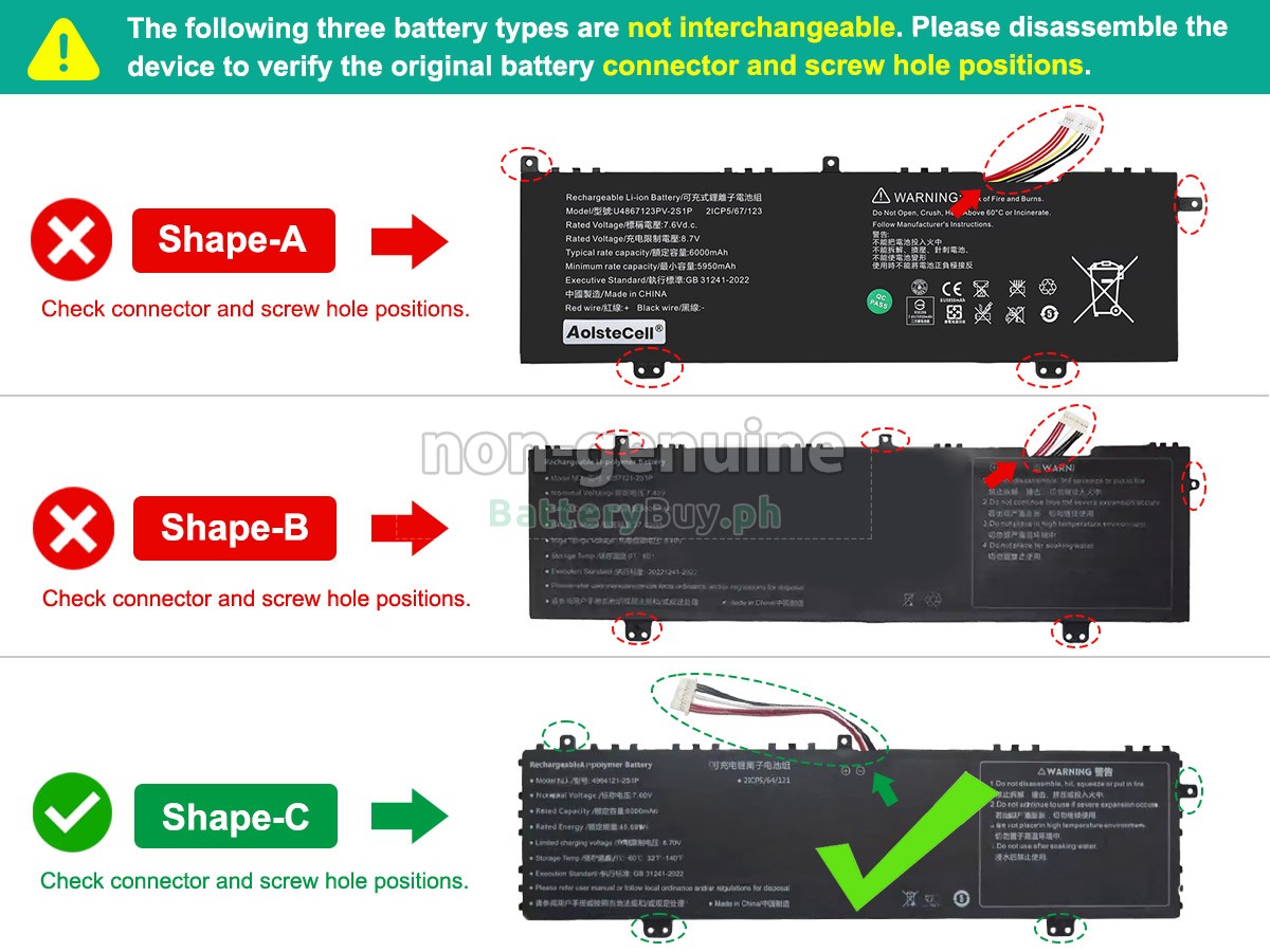 We choose PC-ABS environmental protection material as the battery shell during the assembly process, which is characterized by integrally formed, both beautiful and wear-resistant. In addition, each interface of our battery for Acer 4964121-2S1P is tight enough to fit your laptop perfectly.
