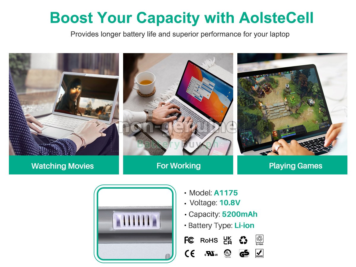 We choose PC-ABS environmental protection material as the battery shell during the assembly process, which is characterized by integrally formed, both beautiful and wear-resistant. In addition, each interface of our battery for Apple MA895LL/A is tight enough to fit your laptop perfectly.