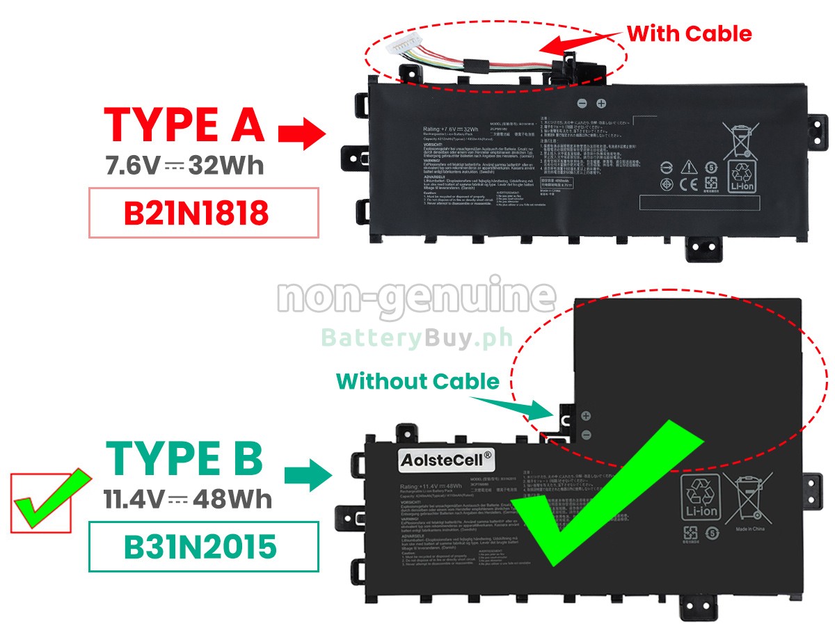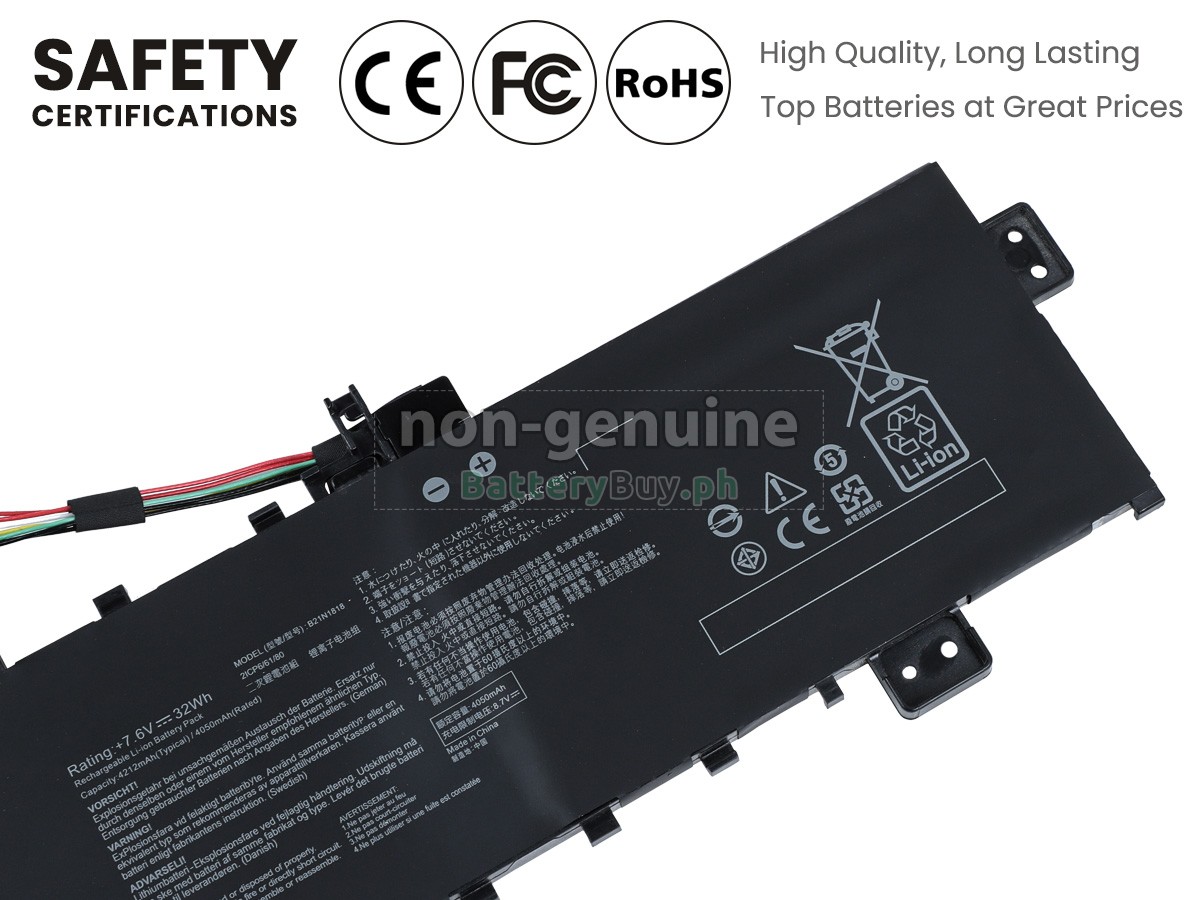 Our battery for Asus VivoBook 17 K712EA-DS76 is composed of cells with Li-Polymer. As could be referred to on our website that there are two types of component with battery cells, which are Lithium Ion and Lithium Polymer. The lifespan and safety performance are virtually identical. In addition, Samsung, Panasonic, LG, and other major imported battery cells we choose can also provide better quality assurance.