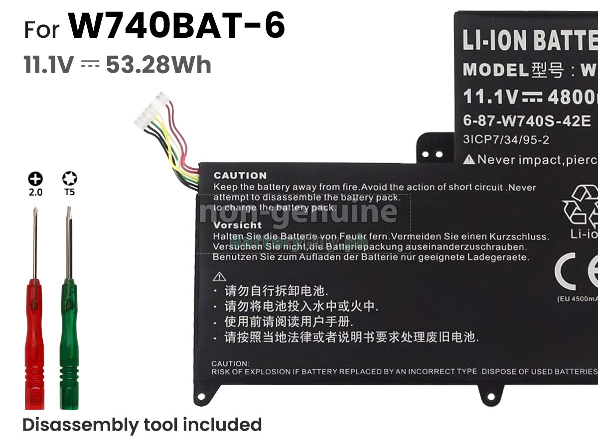 Every laptop battery for Clevo W740BAT-6 has undergone a series of strict tests on appearance, circuit board, and performance before leaving the factory. Only qualified batteries that have passed the inspection are permitted to be sold.