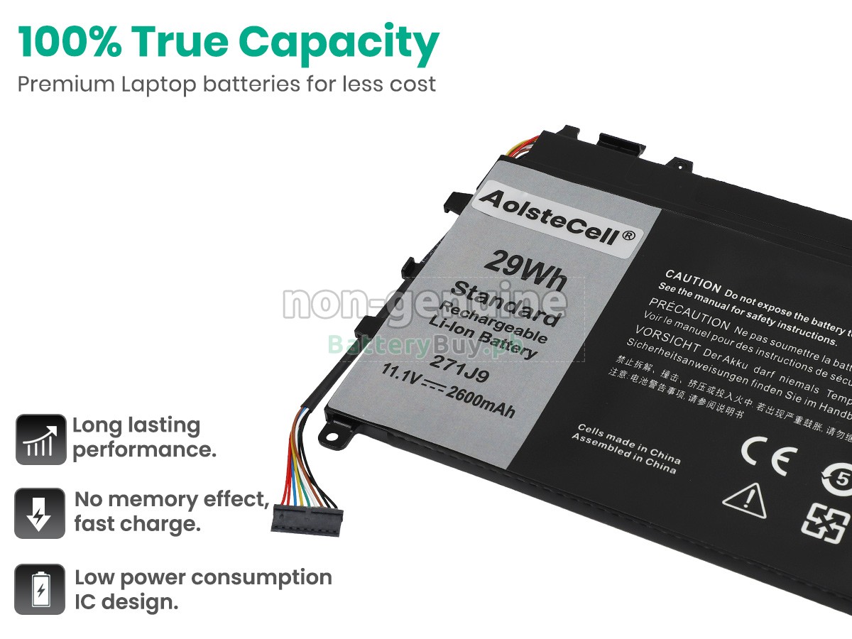 This Dell Latitude 7350 2-IN-1 replacement battery uses cells from famous brands such as Samsung, Panasonic and LG, which makes it have extraordinary battery life. Moreover, the Li-Polymer battery itself has no memory effect, and the charge and discharge cycle can reach 600 to 800 times.