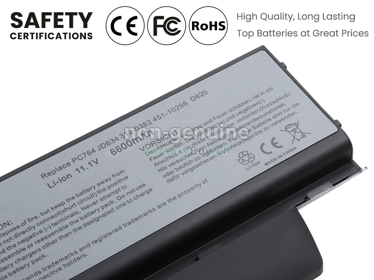 We choose PC-ABS environmental protection material as the battery shell during the assembly process, which is characterized by integrally formed, both beautiful and wear-resistant. In addition, each interface of our battery for Dell Latitude D630N is tight enough to fit your laptop perfectly.