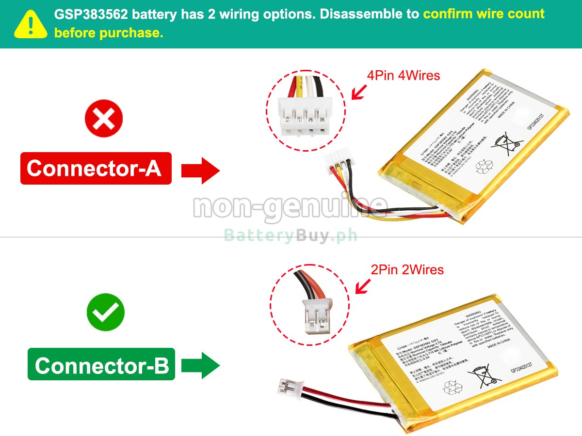 5Please feel free to Contact Us by Email or Live Chat if the above solutions do not work. If necessary we will replace you with a brand-new GSP383562 battery.