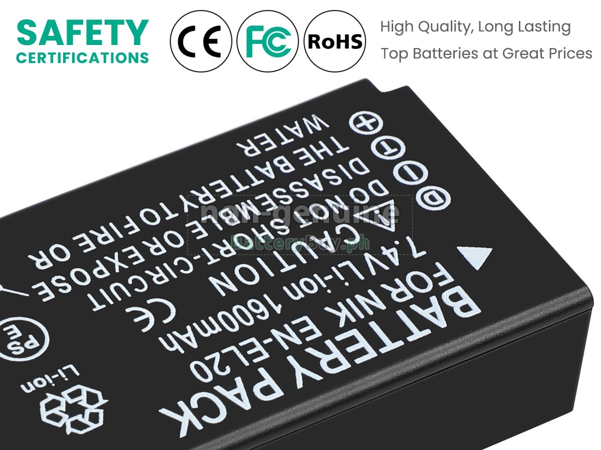 Every battery for Nikon 1 J2 has undergone a series of strict tests on appearance, circuit board, and performance before leaving the factory. Only qualified batteries that have passed the inspection are permitted to be sold.