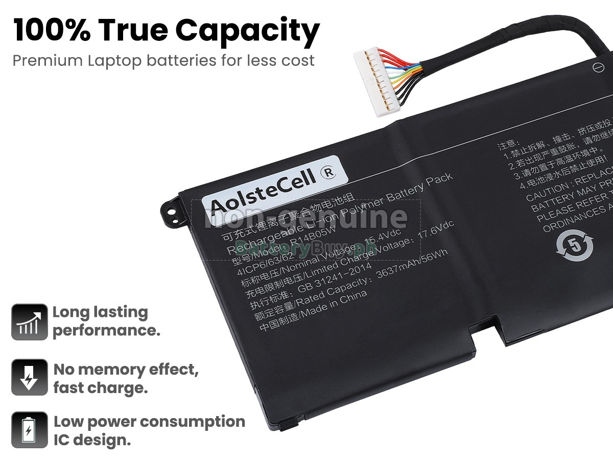 Every laptop battery for XiaoMi R14B05W has undergone a series of strict tests on appearance, circuit board, and performance before leaving the factory. Only qualified batteries that have passed the inspection are permitted to be sold.